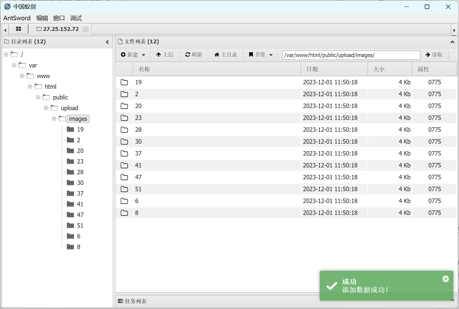 登陆后即可管理存储信息,将页面显示的文件由 /root 改为 / 下的文件,保存