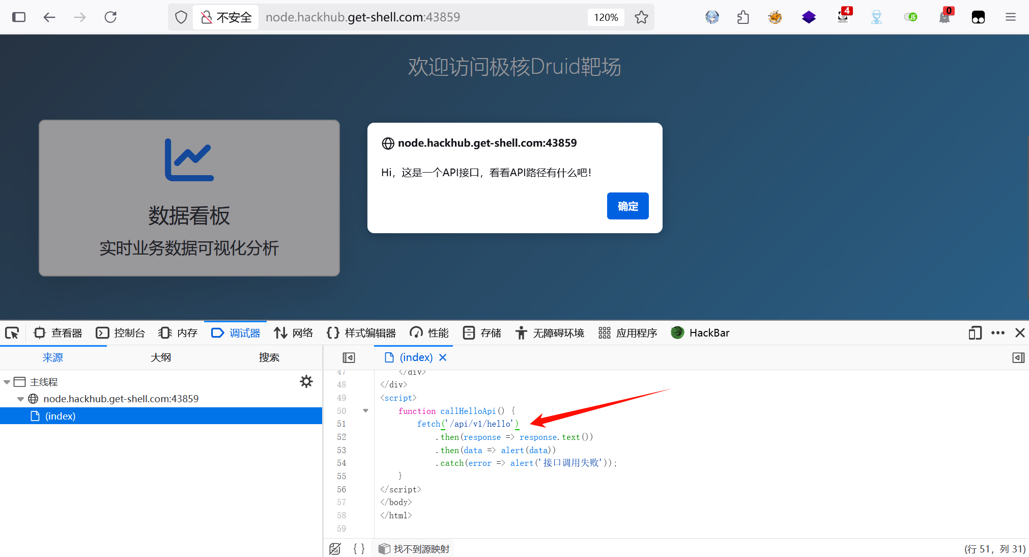 点击数据看板,提示 Hi,这是一个API接口,看看API路径有什么吧!