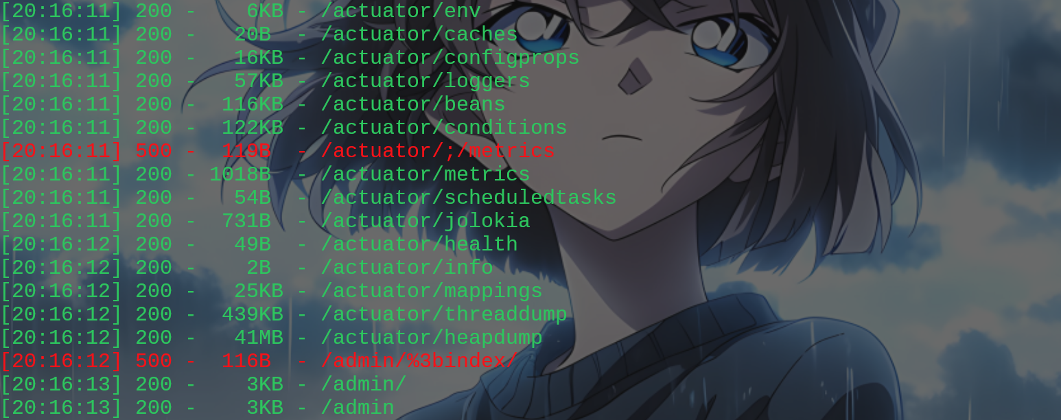 发现 /admin 路由是后台地址,/actuator 路由是所有存在的断点