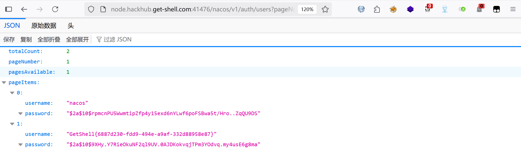 测试发现可以未授权查看用户信息,拼接如下路由即可看到系统中的登陆用户,得到 flag