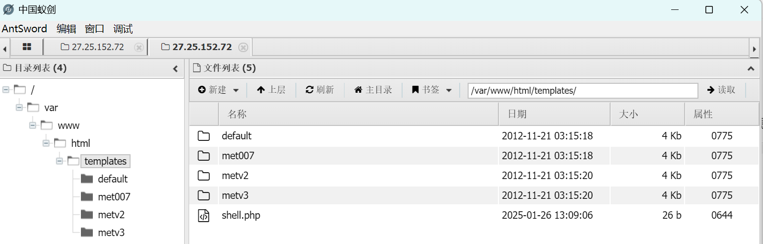 写一个一句话木马,打包成压缩包,在界面风格->模板管理->添加新模板处上传木马压缩包,上传后会自动将压缩包里面的 shell.php 文件解压到网站的 /templates/ 目录下